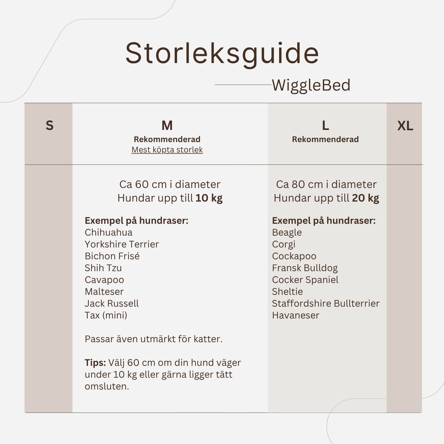 Vi rekommenderar att du mäter ditt husdjur från nos till svans och jämför med storlekstabellen på produktsidan. Är du osäker – välj en storlek större för extra komfort.