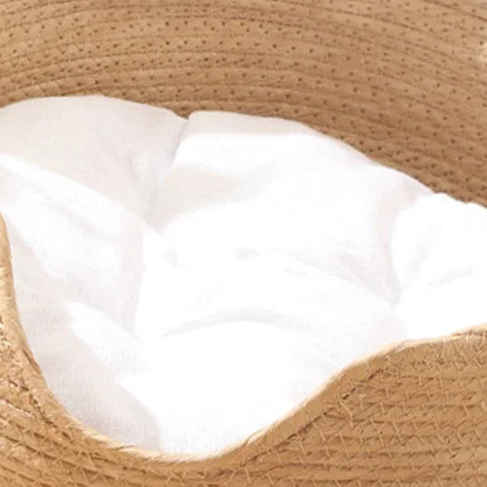 Ge din katt eller hund en sval och bekväm plats att vila på under sommaren! Denna flätade bädd är tillverkad i naturligt halm med elegant design och en mjuk bomullsdyna. Perfekt som sommarbädd för katter och små hundar.